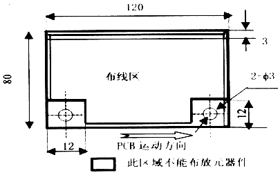 1. 電原理和機械結構設計,根據(jù)整機結構確定PCB的尺寸和結構形狀。畫出SMT印制板外形工藝圖,標出PCB的長、寬、厚,結構件、裝配孔的位置、尺寸,留出邊緣尺寸等,使電路設計師能在有效的范圍內(nèi)進行布線設計(見圖7-1)。