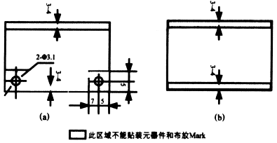 3.針定位與邊定位不能布放PCB基準(zhǔn)標(biāo)志(Mark) 的區(qū)域見圖9-2。