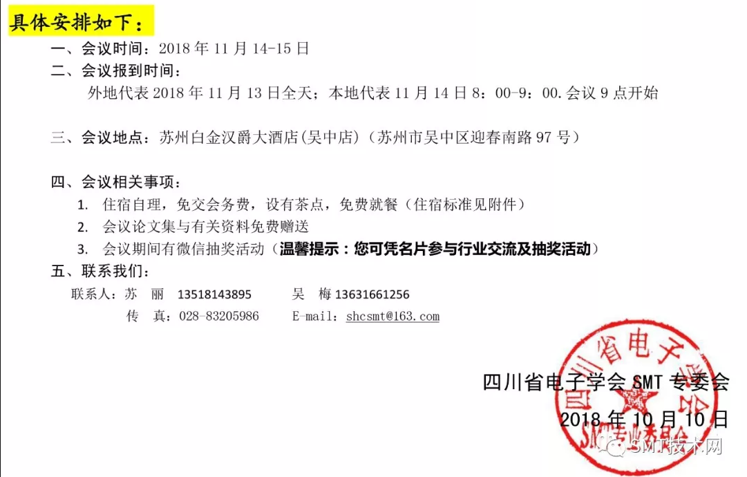 2018中國高端SMT學術(shù)會議(第十二屆)邀請函